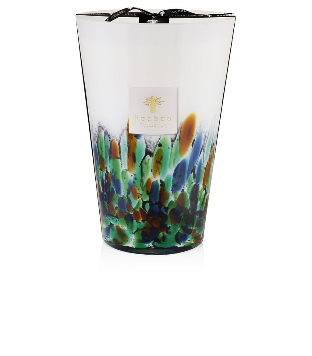 La bougie parfumée Amazonia est contenue dans un verre opalin soufflé bouche avec des inserts de confettis de verre turquoises, bleus et bruns. Chaque verre est unique car la couleur s’inscrit dans le verre de façon aléatoire. La forêt amazonienne est la plus grande forêt du monde et s’étend sur 7,3 millions de km², dont plus de la moitié se situe au Brésil. Sa biodiversité est unique au monde et abrite en son sein des tribus aux rites ancestraux et fascinants.