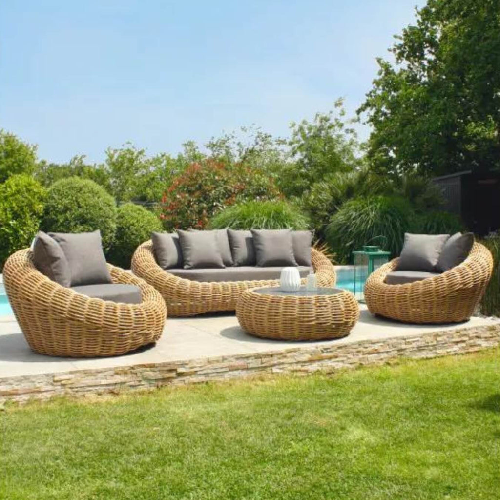 Son design : Les formes généreuses et arrondies de ce salon de jardin Moorea sont une vraie invitation au voyage, elles lui donnent un aspect cocooning propice aux moments de détente.